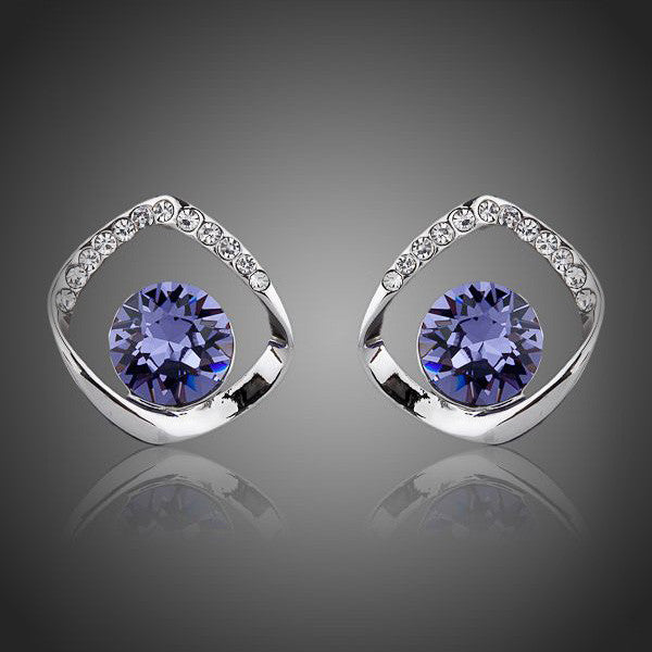 Náušnice s výrazným fialovým krištáľom obkolesené čírymi krištálikmi vyzdvihnú Vašu ženskosť. Zachová si dlhotrvajúci lesk a jas.