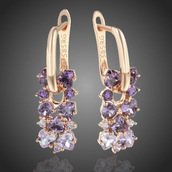 Krásne visiace náušnice s ladnou zvonkohrou fialových žiarivých krištáľov nezostanú bez povšimnutia. Vďaka kvalitnej galvanizácii si zachováva dlhotrvajúci lesk a jas. Bez obsahu niklu, olova, kadmia. Antialergické.