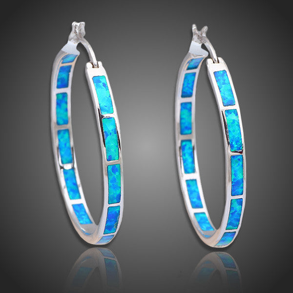 Kruhové náušnice, ktoré Vám vyrazia dych. Modrý módny žiarivý opál vytvára nádherný efekt. Vďaka kvalitnej galvanizácii si zachováva dlhotrvajúci lesk a jas. Bez obsahu niklu, olova, kadmia. Antialergické.