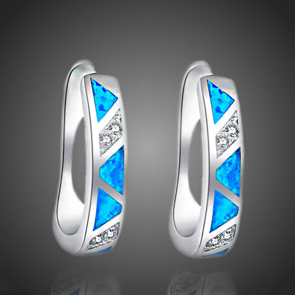Obľúbené polkruhové náušnice s modrým žiarivým opálom a čírymi zirkónmi. Vďaka kvalitnej galvanizácii si zachováva dlhotrvajúci lesk a jas. Bez obsahu niklu, olova, kadmia. Antialergické.