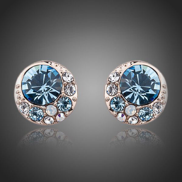 Jemné náušničky vykladané modrými krištáľmi rozjasnia Vašu tvár. Zachovávajú si dlhotrvajúci lesk a jas.