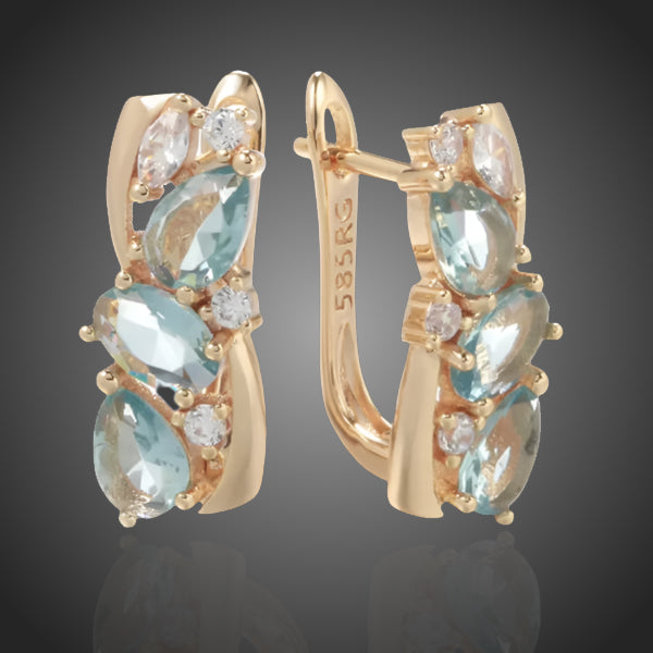 Krásne ladné náušnice s ladnými jemno modrými zirkónmi na ušku vyniknú. Vďaka kvalitnej galvanizácii si zachováva dlhotrvajúci lesk a jas. Bez obsahu niklu, olova, kadmia. Antialergické.
