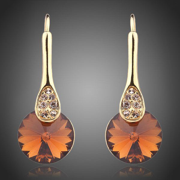 Unikátne náušnice s výrazným oranžovo hnedým krištáľom a drobnými čírymi krištáľmi rozjasnia celý Váš deň. Bez obsahu niklu, olova, kadmia. Antialergické.
