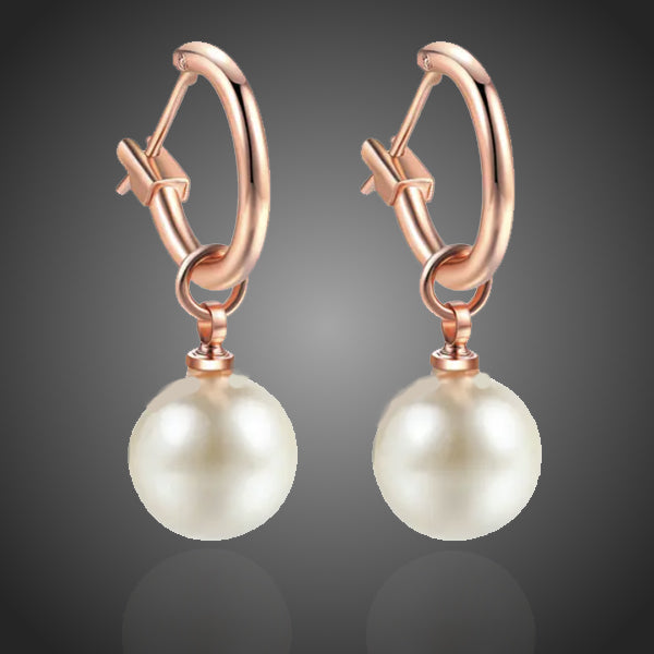 Krásne visiace náušnice s bielymi krištáľovými perlami vyniknú v bežný deň i v spoločnosti.  Bez obsahu niklu, olova, kadmia. Antialergické.