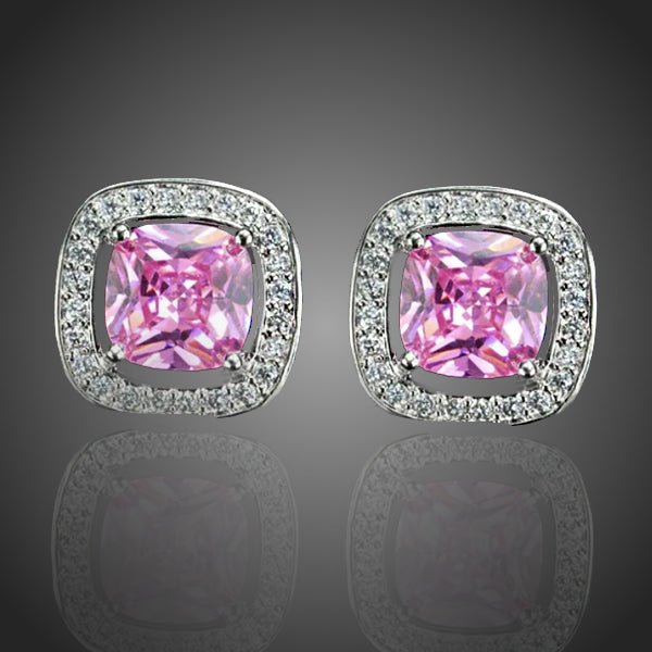 Náušnice s ružovými zirkónmi kocky PinkGarden