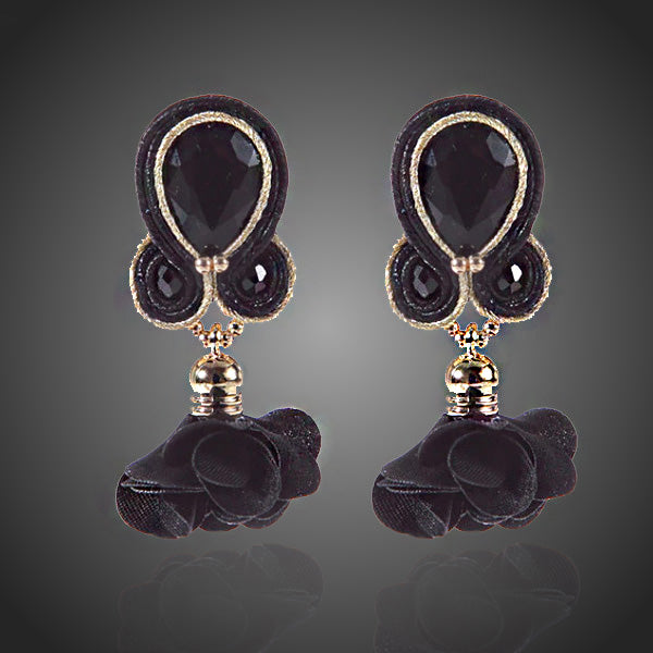 Módny hit. Ručne šité čiernenáušnice soutache technikou s čiernym krištáľom a kvietkom. Antialergické.