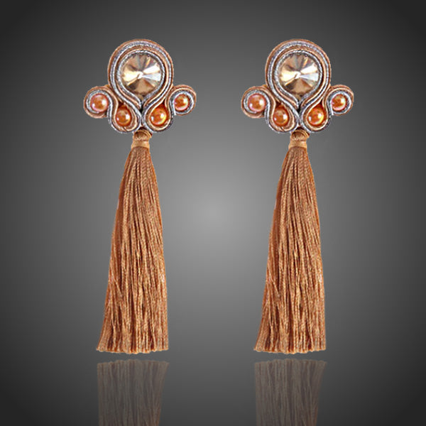 Módny hit. Ručne šité kávové náušnice soutache technikou s kávovým krištáľom a strapcami. Antialergické. V reále sú nádherné.