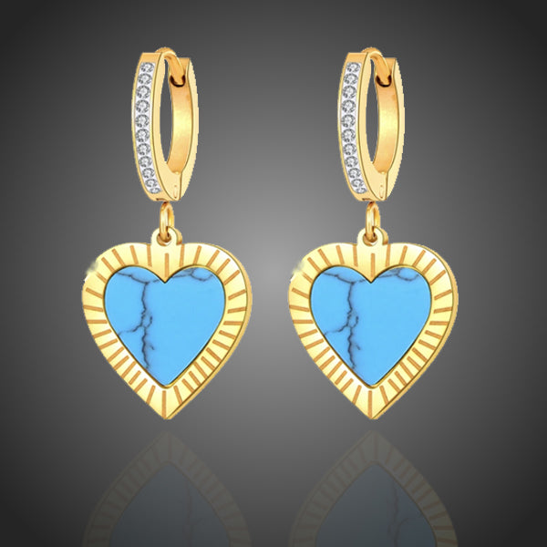 Náušnice srdcia z chirurgickej ocele Tyrkys Gold