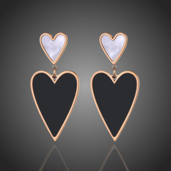 Krásne srdcové náušnice s bielou lastúrou a čiernym smaltom. Zachováva si dlhotrvajúci lesk a jas. Antialergické.