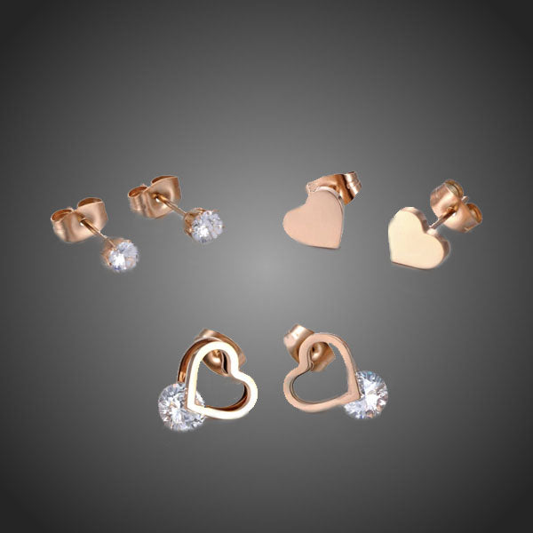 Sada troch druhov jemných náušničiek doplnených čírymi krištáľmi. Zachováva si dlhotrvajúci lesk a jas. Antialergické.