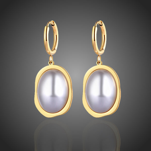 Krásne visiace náušnice v zlatej farbe s krištáľovou perlou na ušku vyniknú. Zachováva si dlhotrvajúci lesk a jas. Antialergické.