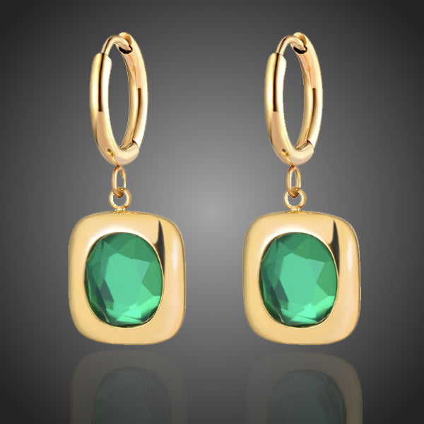 Krásne visiace náušnice v zlatej farbe so zeleným krištáľom na ušku vyniknú. Zachováva si dlhotrvajúci lesk a jas. Antialergické.