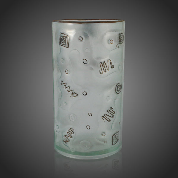 Originálna váza v jemnocitnom prevedení. Ohýbané sklo zdobené kovom a platinou. Ručná výroba, zaujímavé prevedenie, originálne podpísané. Vhodná ako dekorácia, aj k praktickému použitiu.