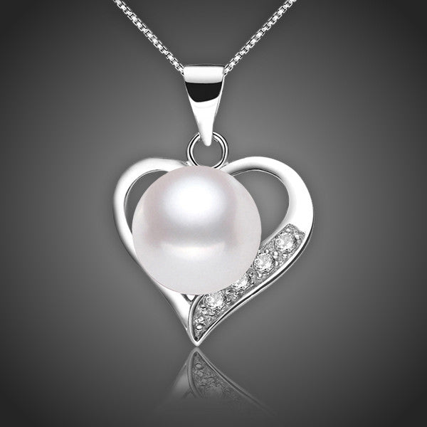Romantický náhrdelník srdce, do ktorého je osadená biela riečna perla. Srdiečko je zdobené drobnými zirkónmi s použitím špeciálnej techniky micropave. Vďaka galvanizácii platinou si zachováva dlhotrvajúci lesk a jas. Bez obsahu niklu, olova, kadmia. Antialergické.