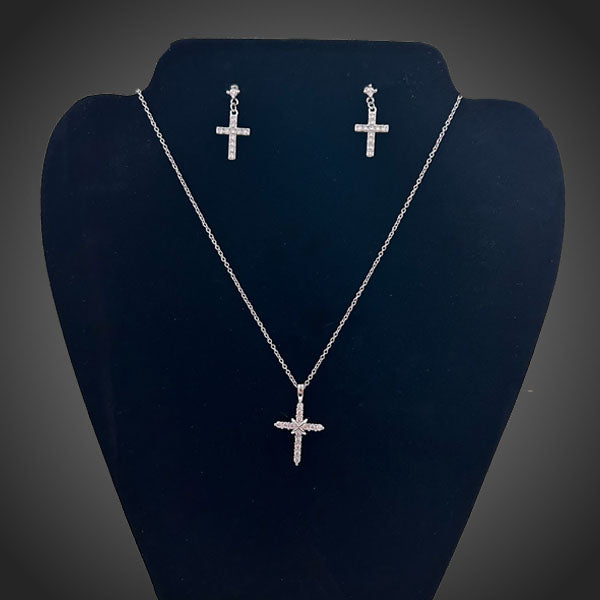 Obľúbený šperkový set s jemnou retiazkou s krížikmi, ktoré sú vykladané mnohými žiarivými drobnými čírymi krištáľmi. Zachová si dlhotrvajúci lesk a jas. Bez obsahu niklu, olova, kadmia. Antialergické.