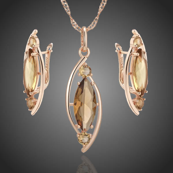 Krásny dámsky elegantný set so zaujímavým štíhlym príveskom a náušnicami s jemne hnedými zirkónmi zažiari. Nechajte sa poláskať jeho teplými tónmi. Pre jedinečné chvíle. Vďaka galvanizácii si zachováva dlhotrvajúci lesk a jas. Bez obsahu niklu, olova, kadmia. Antialergické.