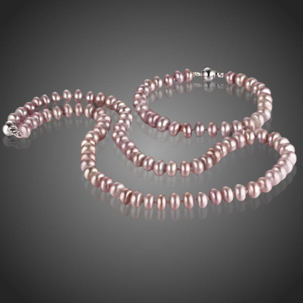 Krásny set z ružovkastých riečnych perál sa stane elegatným doplnkom. Ružová Vás poláska svojim nádychom. Jemné zapínanie v tvare guličky si vďaka galvanizácii platinou si zachováva dlhotrvajúci lesk a jas. Antialergické.