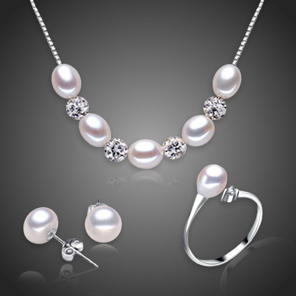 Set s bielymi riečnymi perlami Giova Trio