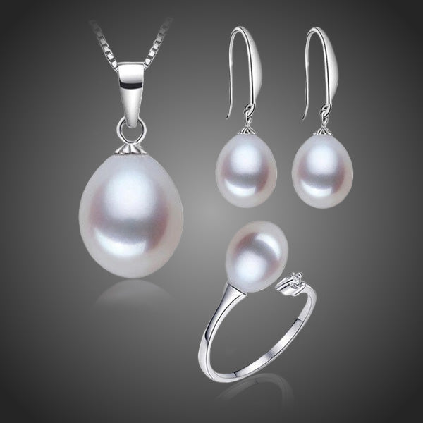 Perlový set tvorený z oválnych bielych riečnych perál z Vás urobí pravú dámu. Vďaka galvanizácii platinou si zachováva dlhotrvajúci lesk a jas. Bez obsahu niklu, olova, kadmia. Antialergické.