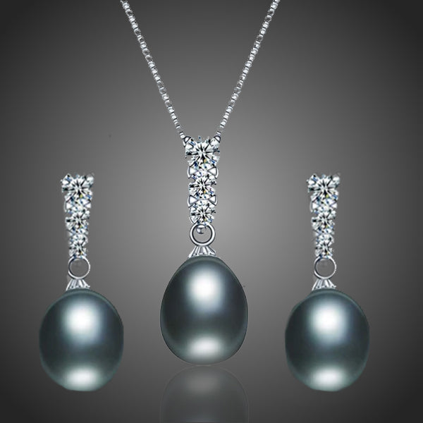 Elegantný náhrdelník a náušnice v kombinácii s čiernou riečnou perlou a zirkónmi s použitím špeciálnej techniky micropave. Vďaka galvanizácii platinou si zachováva dlhotrvajúci lesk a jas. Bez obsahu niklu, olova, kadmia. Antialergické.