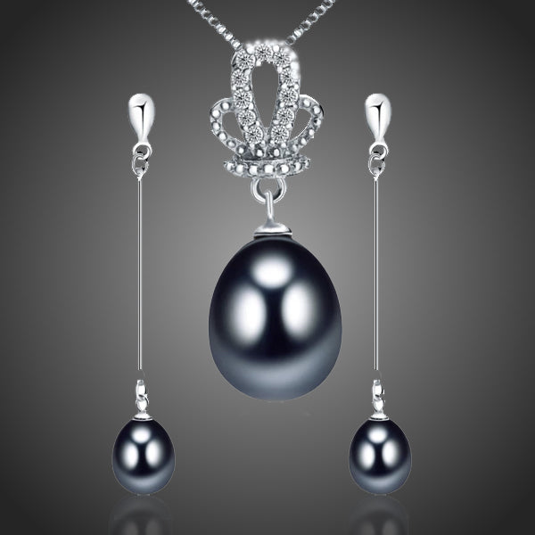 Elegantný sofistikovaný set s čiernymi ovalnými riečnymi perlami zdobený drobnými zirkónmi s použitím špeciálnej techniky micropave. Vďaka galvanizácii platinou si zachováva dlhotrvajúci lesk a jas. Bez obsahu niklu, olova, kadmia. Antialergické.