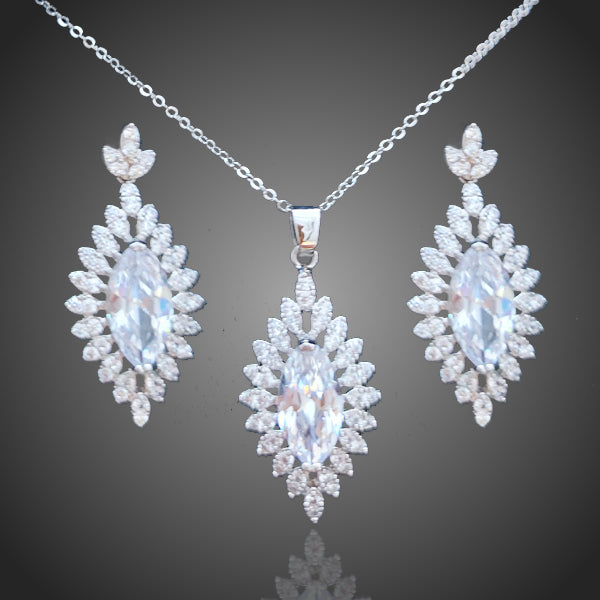 Nádherný žiarivý šperkový set s čírymi zirkónmi s diamantovým odleskom sa stane krásnym doplnkom. Vďaka kvalitnej galvanizácii 3 vrstvou bieleho zlata si zachováva dlhotrvajúci lesk a jas. Bez obsahu niklu, olova, kadmia. Antialergické.