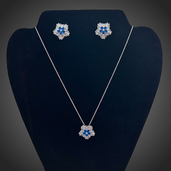 Ladný set so žiarivými modrými a čírymi zirkónmi v kvete s diamantovým odleskom sa stane krásnym doplnkom. Kvety sú nádherné vďaka precíznemu zdobeniu. Vďaka kvalitnej galvanizácii 3 vrstvou bieleho zlata si zachováva dlhotrvajúci lesk a jas. Bez obsahu niklu, olova, kadmia. Antialergické.