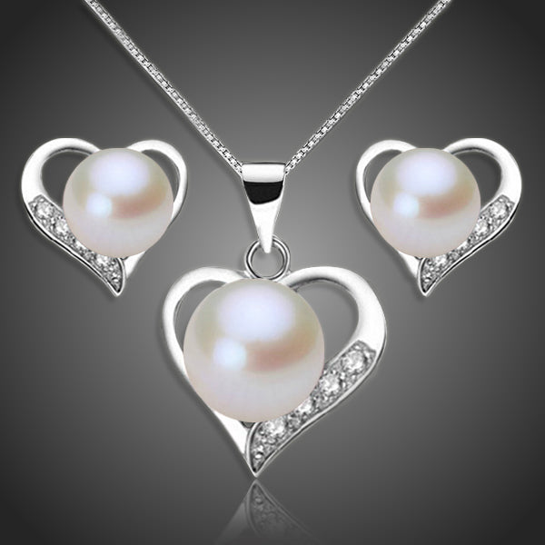 Set so srdcom s bielymi riečnymi perlami Lucettes