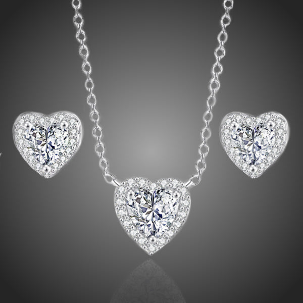 Obľúbený šperkový set s jemnou retiazkou a so srdiečkami, ktoré sú vykladané mnohými žiarivými drobnými čírymi krištáľmi. Zachová si dlhotrvajúci lesk a jas. Bez obsahu niklu, olova, kadmia. Antialergické.