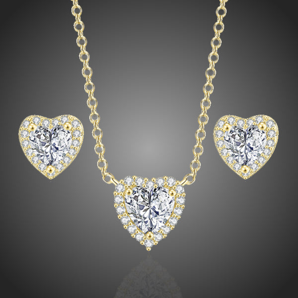 Obľúbený šperkový set s jemnou retiazkou a so srdiečkami, ktoré sú vykladané mnohými žiarivými drobnými čírymi krištáľmi. Zachová si dlhotrvajúci lesk a jas. Bez obsahu niklu, olova, kadmia. Antialergické.