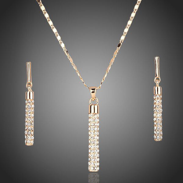 Elegantný set s krásnou líniou prívesku a náušníc s čírymi krištáľmi z Vás urobí dokonalú dámu. Vďaka kvalitnej galvanizácii si zachováva dlhotrvajúci lesk a jas. Antialergické.